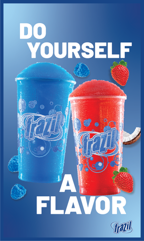 Attract customers to the delicious Frazil flavors in your store with this window sign. It is double sided so customers will see it from the inside and outside.